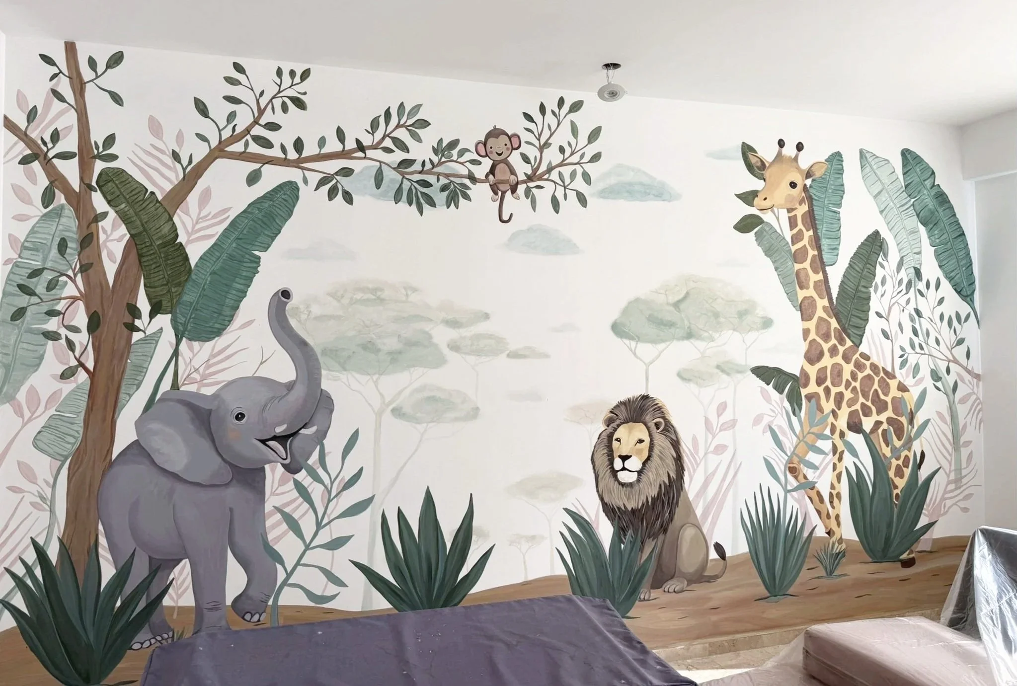 Metepec. Cuarto para niños diseño de selva con animales mexicanos y mascotas de la familia.